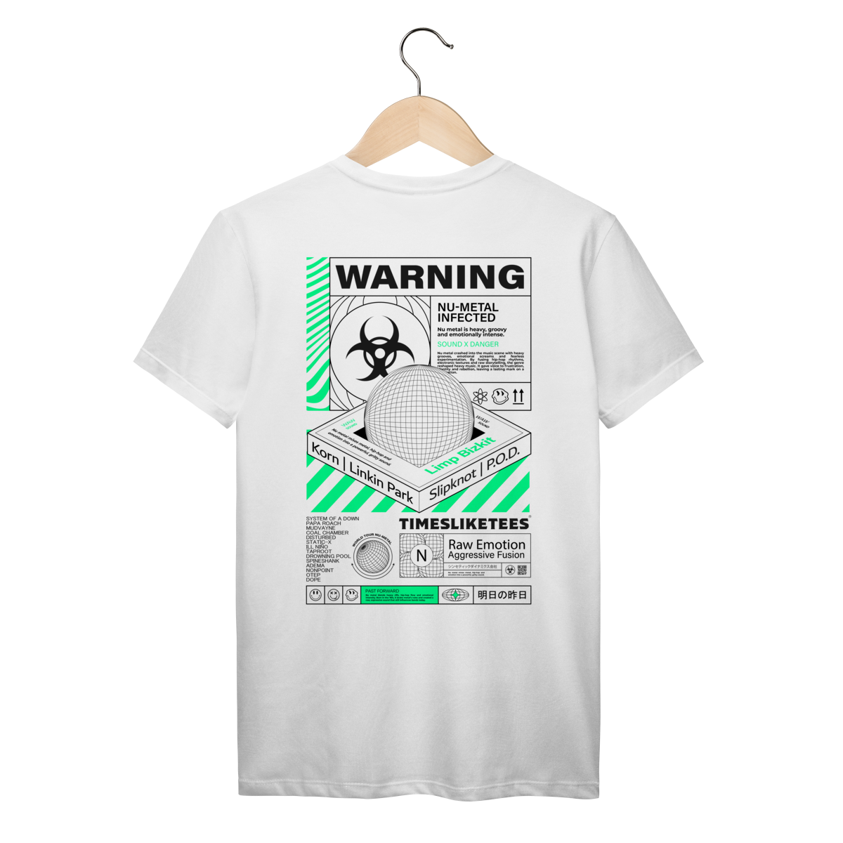 Estampa para quem é fã do gênero de NU METAL com várias referências de bandas.